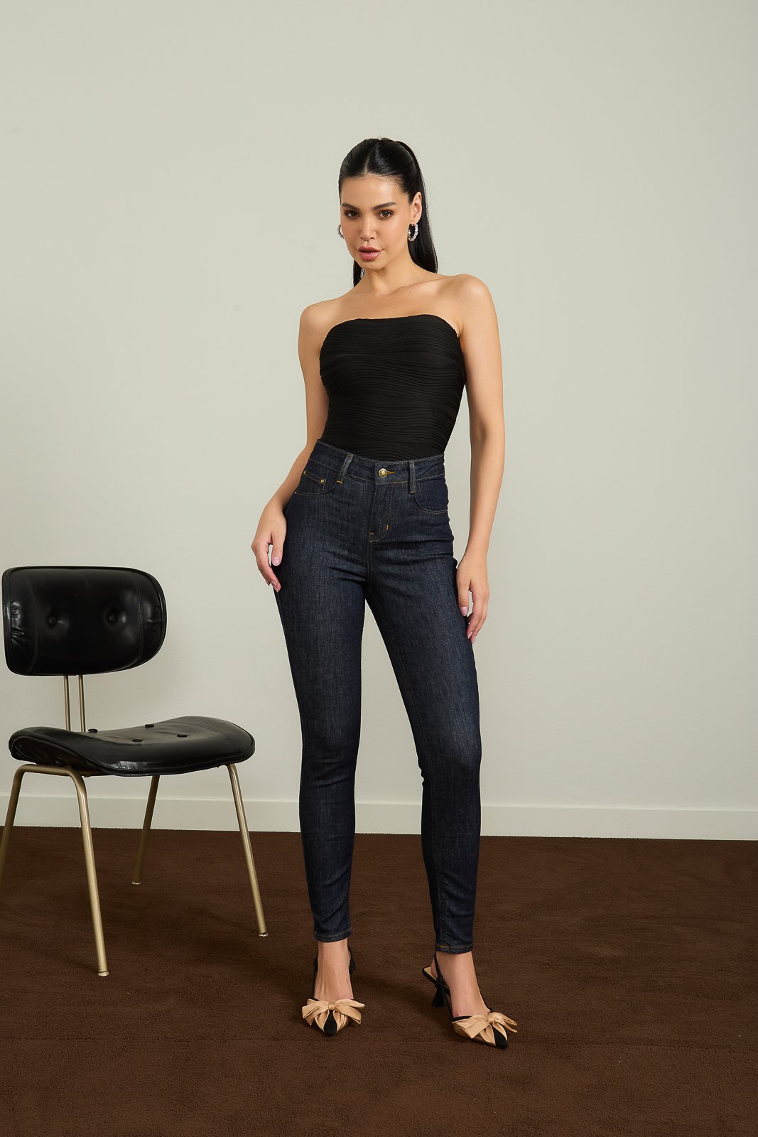 A Calça Jeans Skinny da Denim Zero contém comprimento cigarrete com entrepernas de 72 cm e altura de gancho médio. Sua lavação é escura e a barra tradicional. Seus bolsos costas são funcionais e bolsos frente falsos com bolsinho relógio decorativo. Os aviamentos são exclusivos e personalizados da marca.